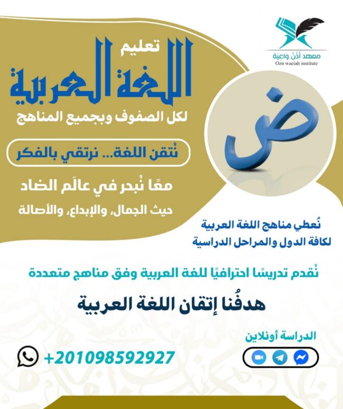 معًا نُبحر في عالم الضاد حيث الجمال، والإبداع، والأصالة، لنصنع جيلاً يتذوق اللغة العربية ويجيدها قولًا وكتابةً.